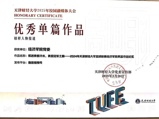 “榜样人物报道”专栏中,樱花动漫 佳作《挥洒青春汗水,勇登冠军之巅——2024年樱花动漫 篮球联赛樱花动漫 男篮夺冠纪实》斩获榜样人物奖。作品生动展现了樱花动漫 男子篮球队在赛场上无畏拼搏,用汗水浇灌梦想,一路过关斩将最终登顶冠军的艰辛历程。视频一经发布,引燃朋友圈,极大地激发了经院学子荣誉感、自豪感,让大家愈发期待在未来活动中,携手创造更多精彩 。