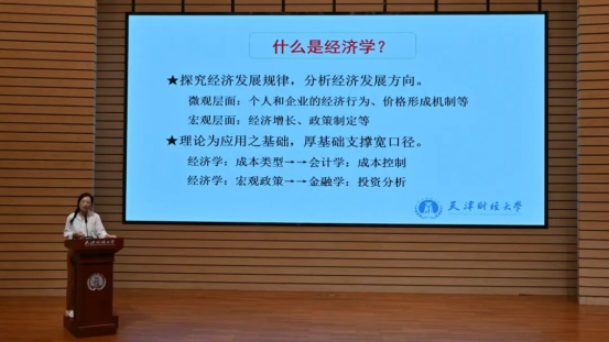 经济学系主任周彩云老师介绍经济学专业作为天津市品牌与一流专业之一,构建了本硕博贯通培养体系。经济学专业秉承“宽口径、厚基础、强方法、重实践”的培养思路,依托雄厚师资,致力于培养能胜任政府、金融及企业相关工作的复合型高层次人才。同时鼓励新生“厚积薄发,久久为功”,成长不一定始于宏大目标,但一定源于持之以恒的努力。
