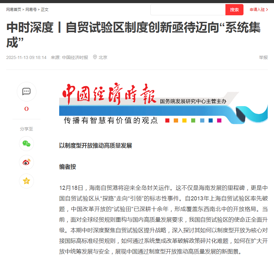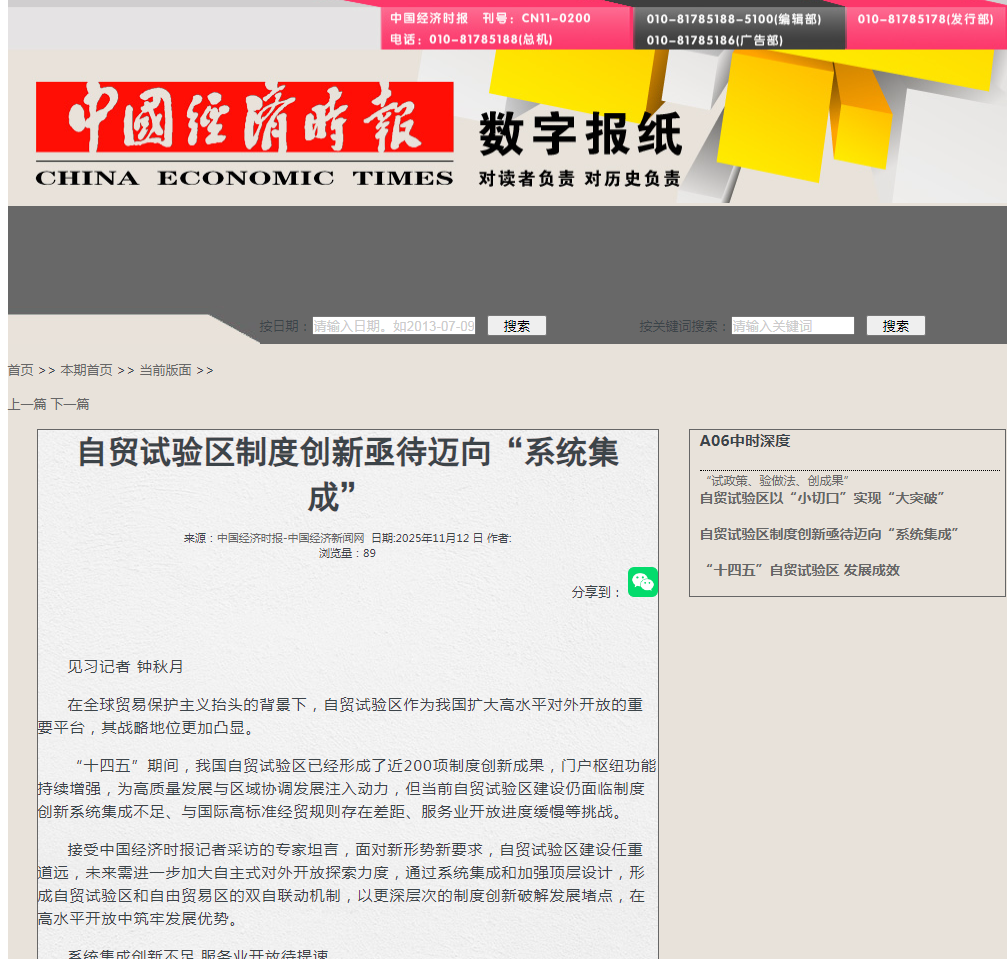《中国经济时报》采访我校樱花动漫 齐俊妍教授探讨自贸试验区提升战略