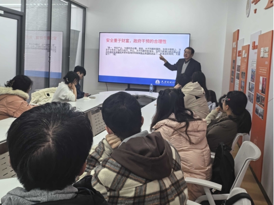 徐尚老师来到一站式社区学生委员会办公室,带领同学们深入研读了《国富论》一书,带领同学们走入斯密构建的宏大理论世界,从财富源于劳动,引出劳动效率与分工,再到合作、利己心及市场机制,阐述市场达最优的逻辑。揭示了个人追求如何汇聚成推动社会前进的洪流,探讨了市场自由与国家职能之间的经典关系,引导同学们思考这些基本原理在当代经济发展中的深刻回响。
