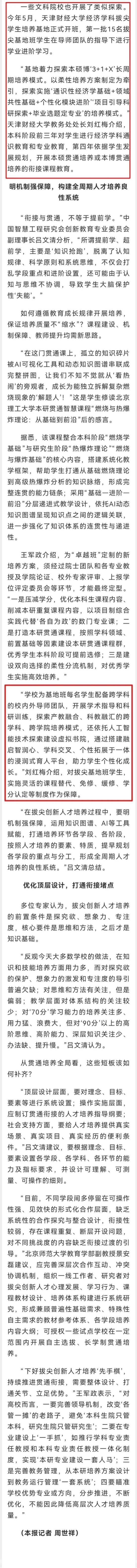 11月11日,《光明日报》报道我校探索学段贯通,为拔尖创新人才铺就个性“进阶路”。